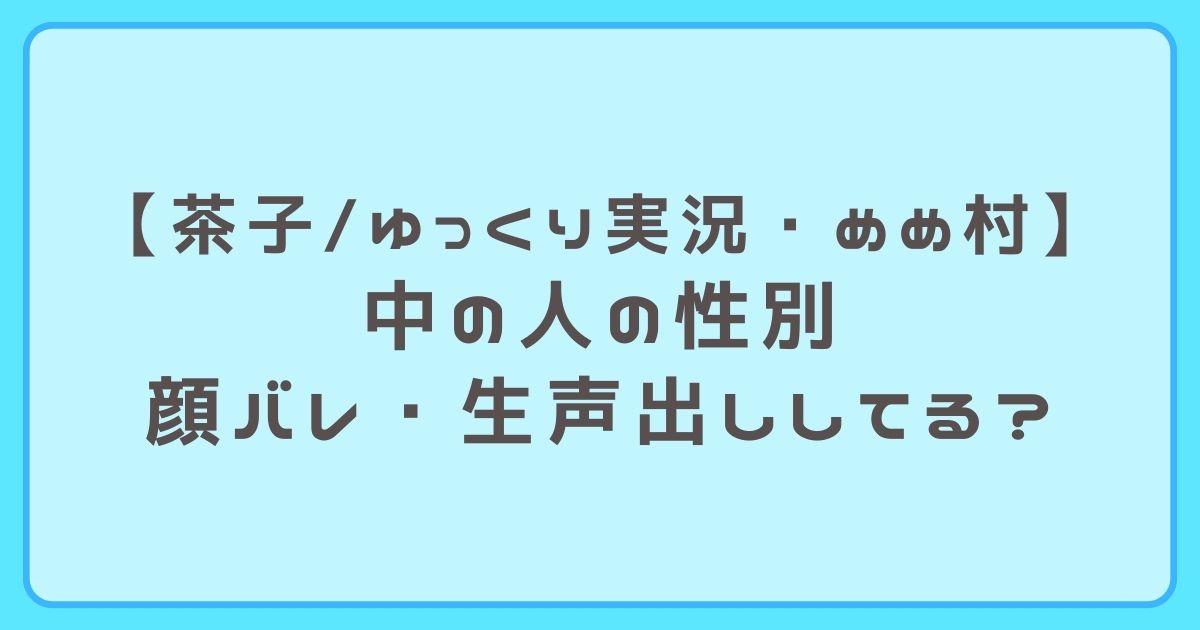 ここまで「茶子(ゆっくり実況)」さんについて、性別・中の人・顔バレ・生声などをまとめてきました。