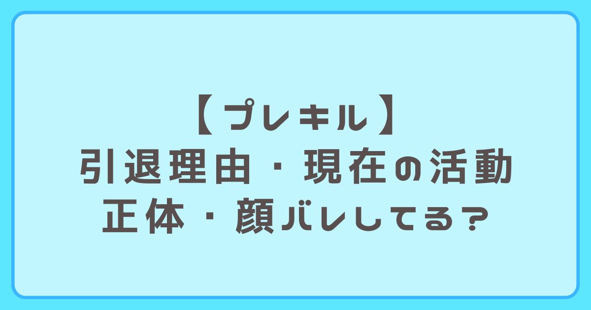 この記事では、プレキルさんの引退理由と現在の活動、正体や顔バレ情報、年齢などプロフィールなどを紹介します。