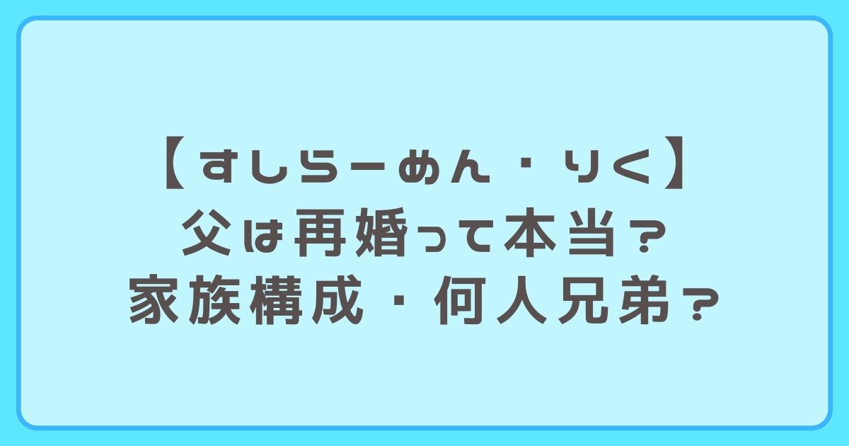 今回は、すしらーめん・りくさんの父は再婚って本当なのか、家族構成や兄弟が何人かについても紹介してきました。